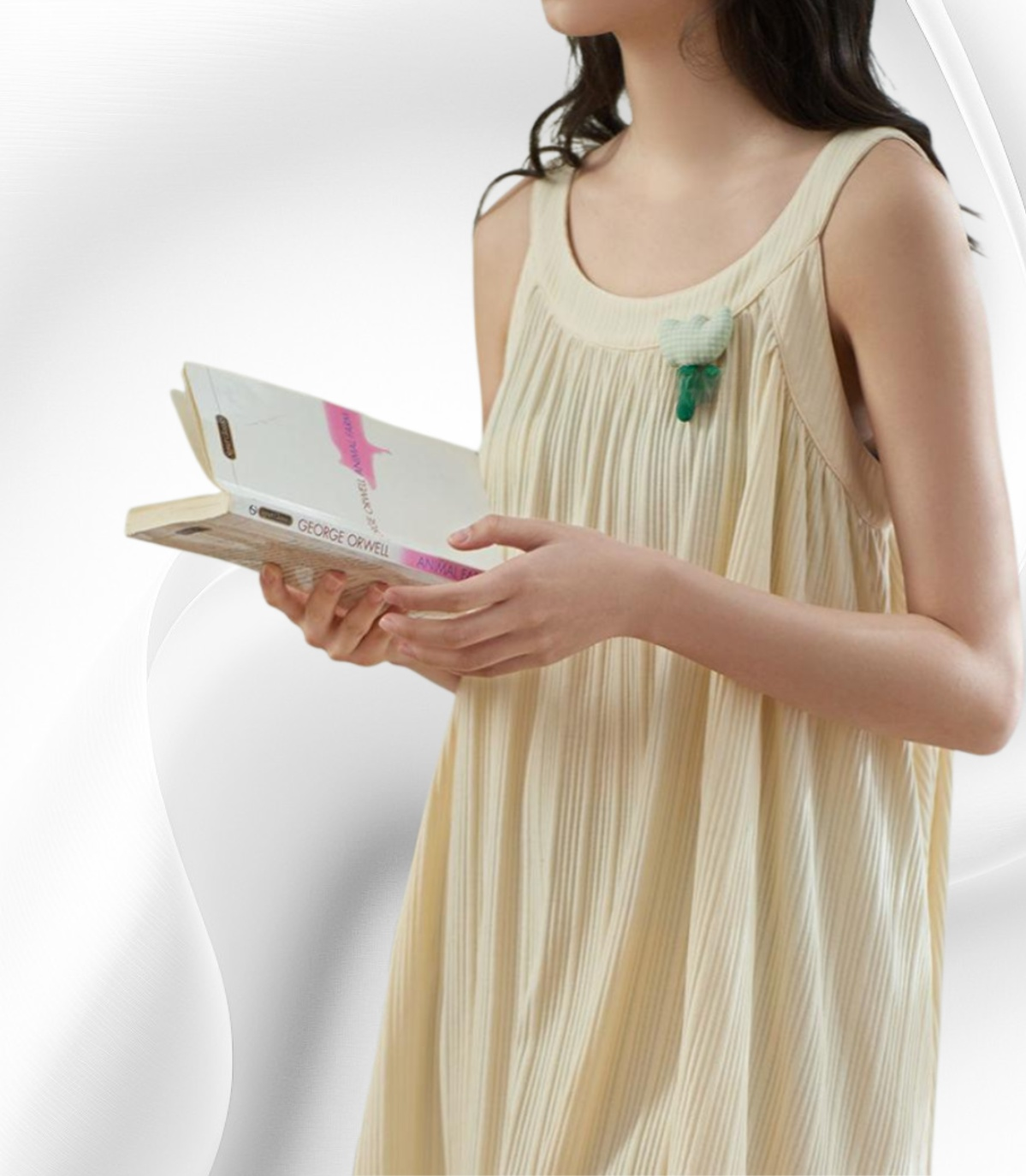 브라캡 내장으로 편안한 착용감, 통기성 좋은 소재 사용, 여름 홈웨어로 적합, 슬림한 핏 연출, 간편한 관리, 다양한 사이즈 제공