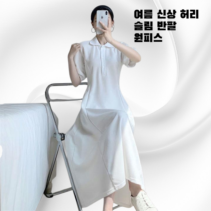 여름 신상 허리 슬림 반팔 원피스, 시원한 소재와 슬림핏 디자인, 허리라인 강조, 데일리와 데이트룩으로 활용 가능, 다양한 컬러와 사이즈.